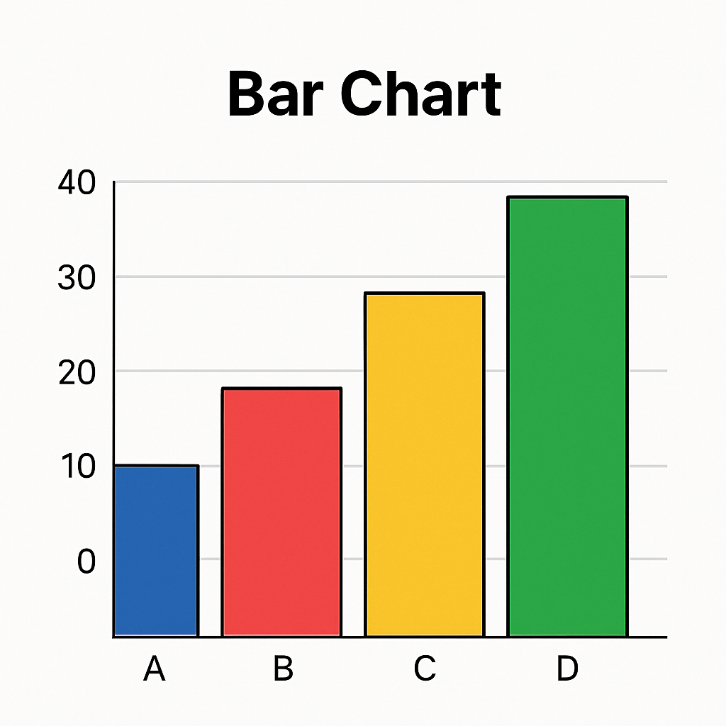 Representa a frequência ou proporção de cada categoria em barras verticais ou horizontais.