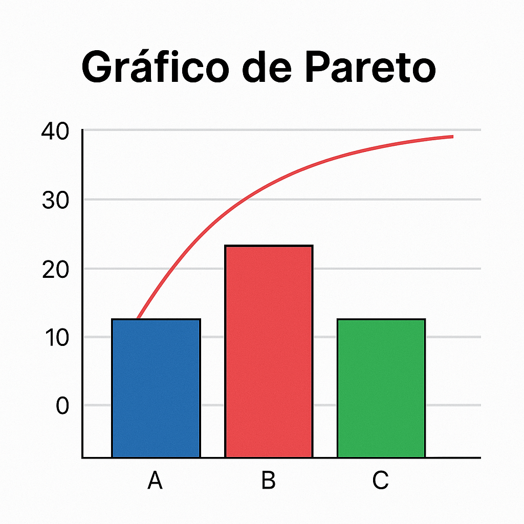 Combina um gráfico de barras com uma linha de frequência acumulada, destacando os fatores mais relevantes.